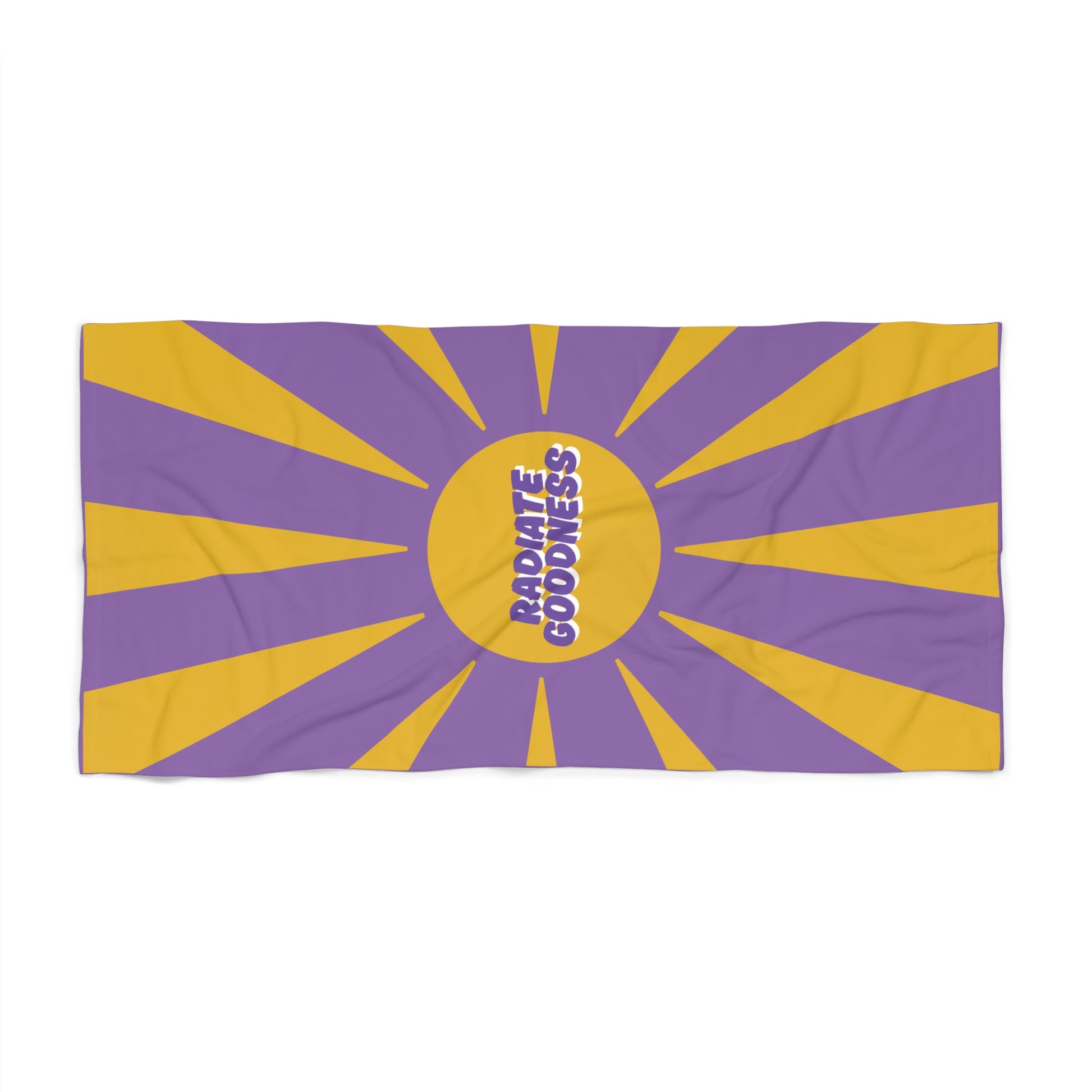 Whether you’re beach-bound, poolside, or having a picnic in the park, the Radiate Goodness towel is your summer must-have. Designed to bring comfort and joy wherever you go, this ultra-soft towel wraps you in positivity and plushness with every use. The bold, vibrant design is printed on the front-facing polyester side in stunning clarity—while the reverse cotton loop backing delivers absorbency and lasting durability.